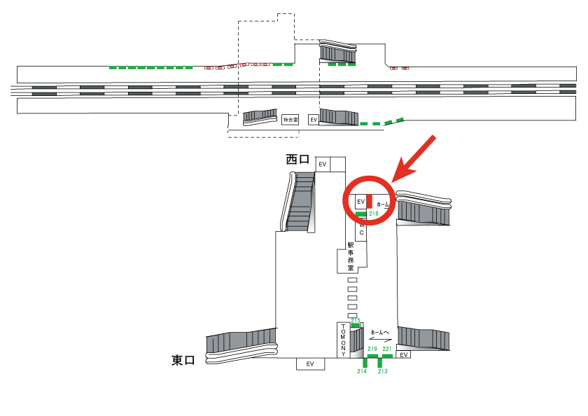 下りホーム 前方階段付近